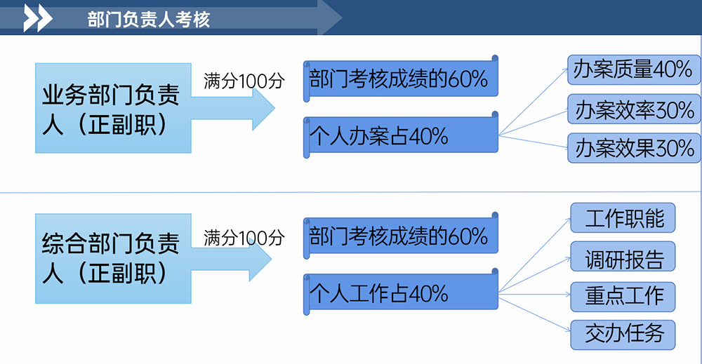 最高檢印發(fā)《關(guān)于開展檢察官業(yè)績考評工作的若干規(guī)定》,確定檢察官79類業(yè)務(wù),160項(xiàng)質(zhì)量指標(biāo)、106項(xiàng)效率指標(biāo)、46項(xiàng)效果指標(biāo),共計(jì)312項(xiàng)考評指標(biāo)。