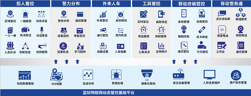 該系統(tǒng)以物聯(lián)網(wǎng)為支撐,整合了云技術(shù)、GIS及大數(shù)據(jù)多種技術(shù),采用大平臺(tái)架構(gòu)設(shè)計(jì),實(shí)現(xiàn)對(duì)人員實(shí)時(shí)定位、軌跡跟蹤、自動(dòng)點(diǎn)名、越界報(bào)警、禁入禁出、智能行為分析等功能。增強(qiáng)安全監(jiān)管力度、確保干警人身安全,提高干警工作效率、減輕工作壓力,杜絕越獄、暴獄等異常事件發(fā)生,從真正意義上實(shí)現(xiàn)監(jiān)管場(chǎng)所人員管理信息化、智能化和規(guī)范化,推動(dòng)監(jiān)獄工作機(jī)制的變革。