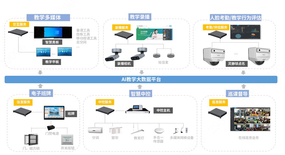 智慧教室解決方案貫穿教、學、評、管整體業(yè)務,系統(tǒng)涵蓋教學多媒體、教學錄播、課堂點名(人臉無感考勤)、教學行為評估、智慧班牌、智慧中控、巡課督導等。